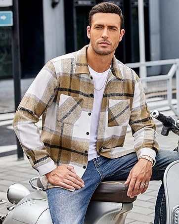 COOFANDY Men's Classic Plaid Flannel Shirts Jacket with Pockets