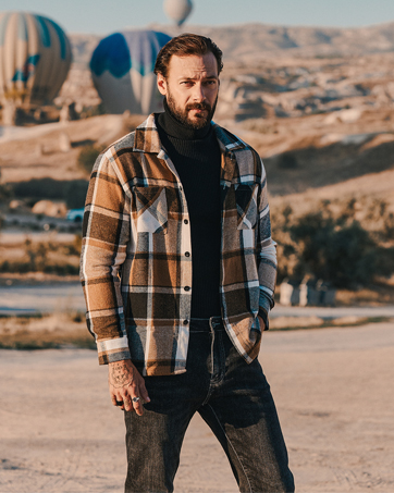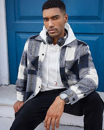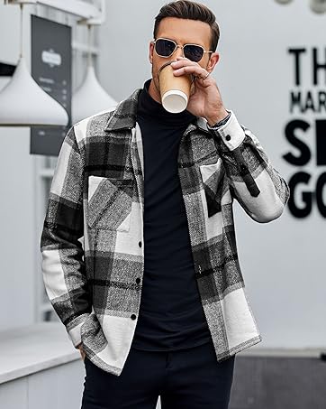 Men's Plaid Shirt Jacket Casual Flannel Shacket