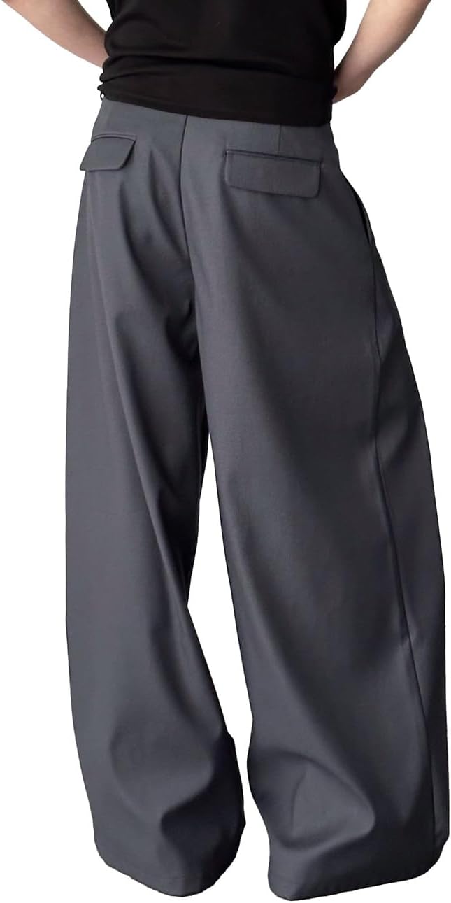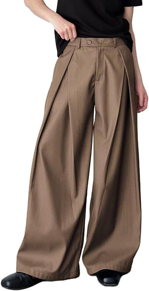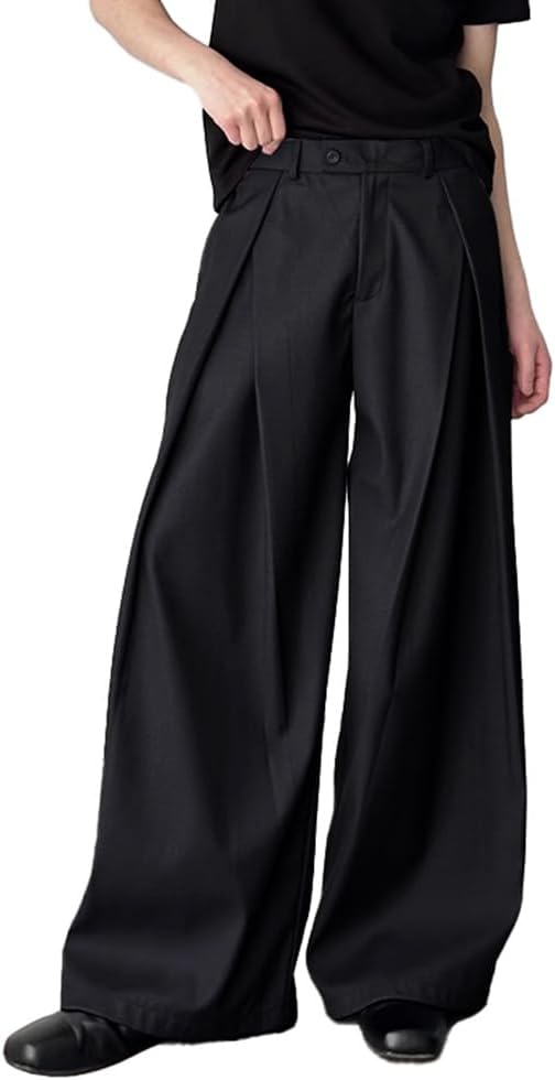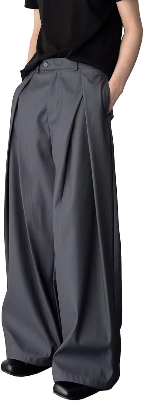 • Men's Baggy Wide Leg Pants Zipper Fly Pleated Trousers Casual Dress Pants with Pocket