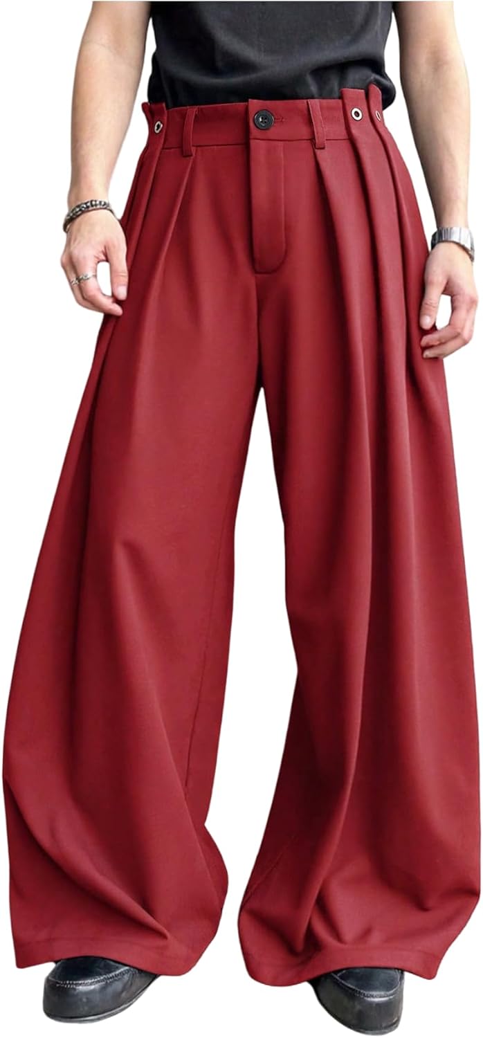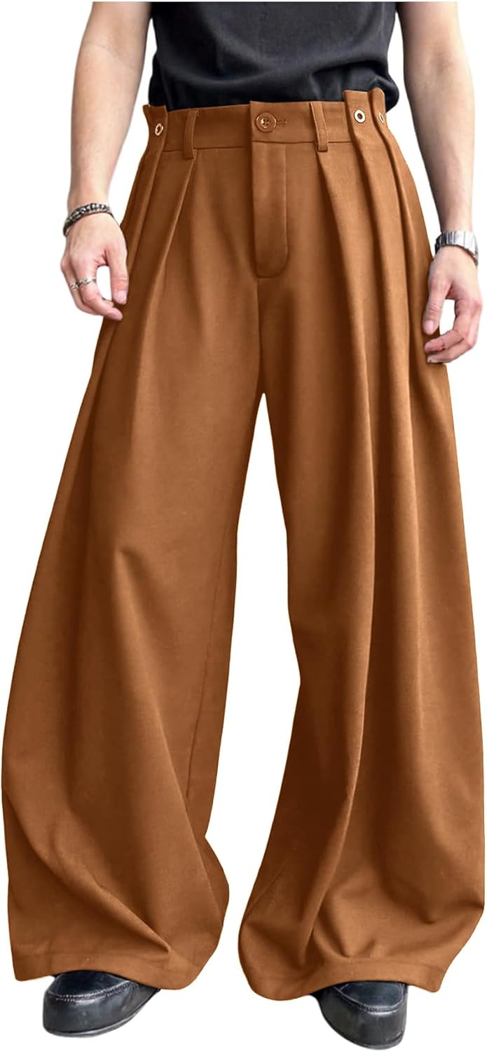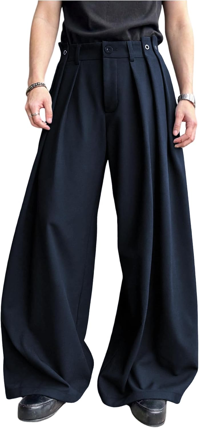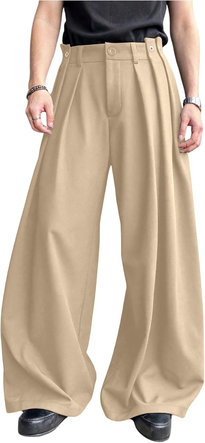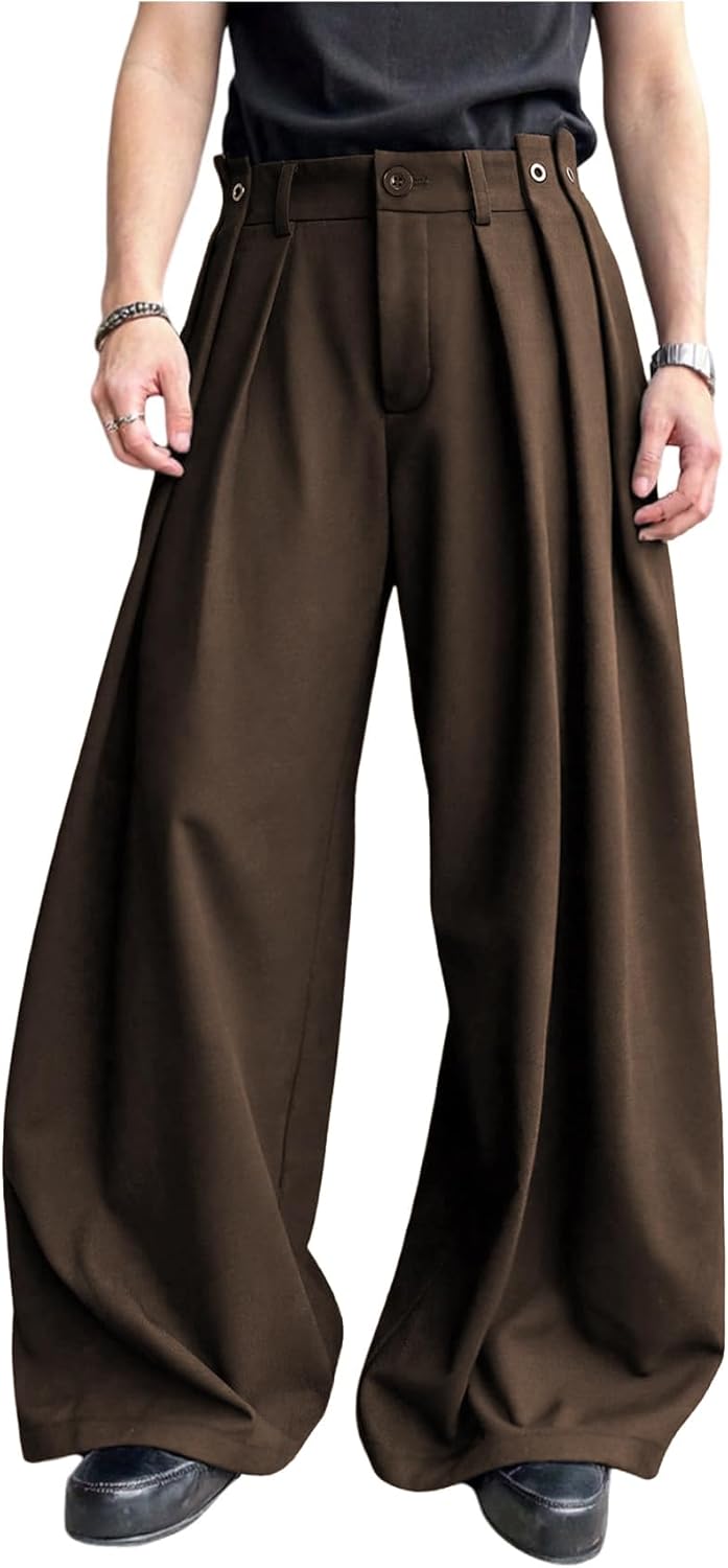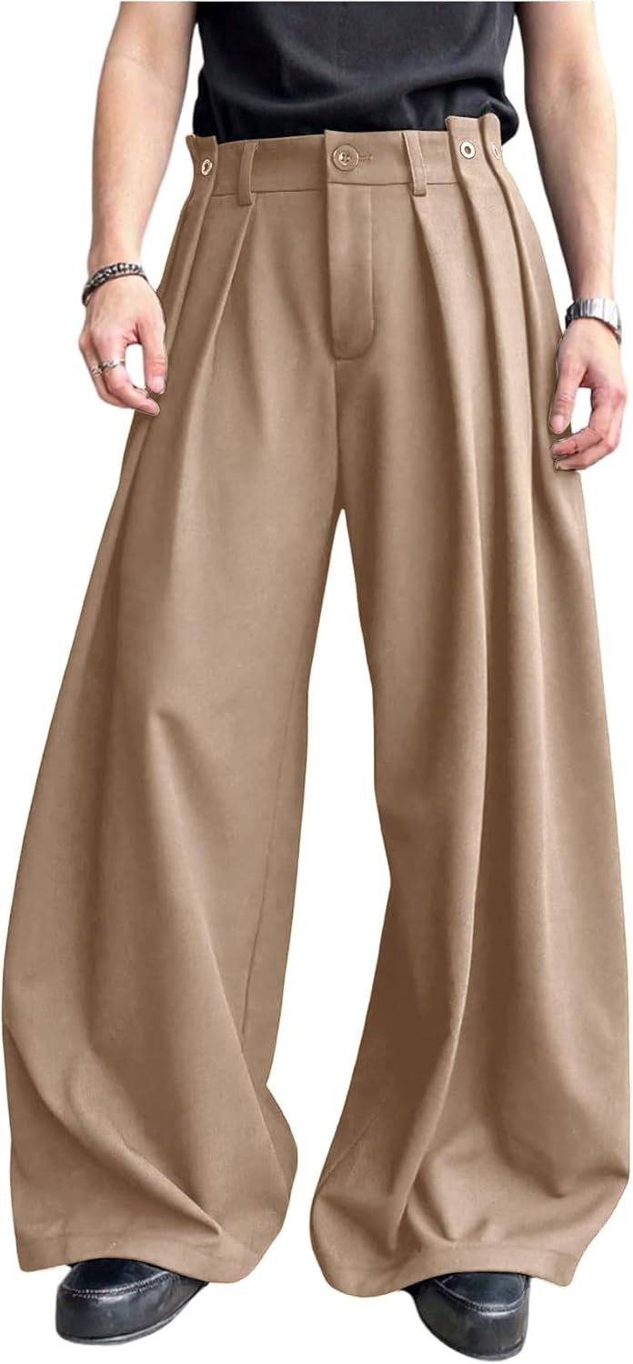 • Men's Dress Pants Wide Leg Baggy Pleated Loose Work Trousers with Pocket