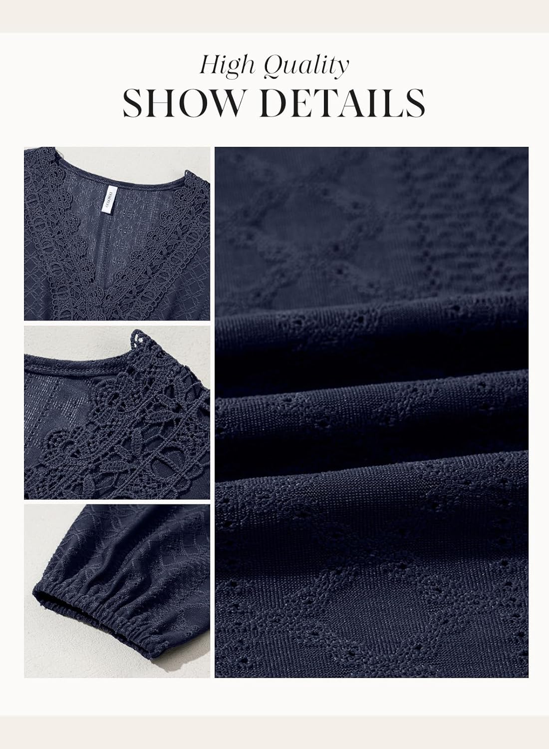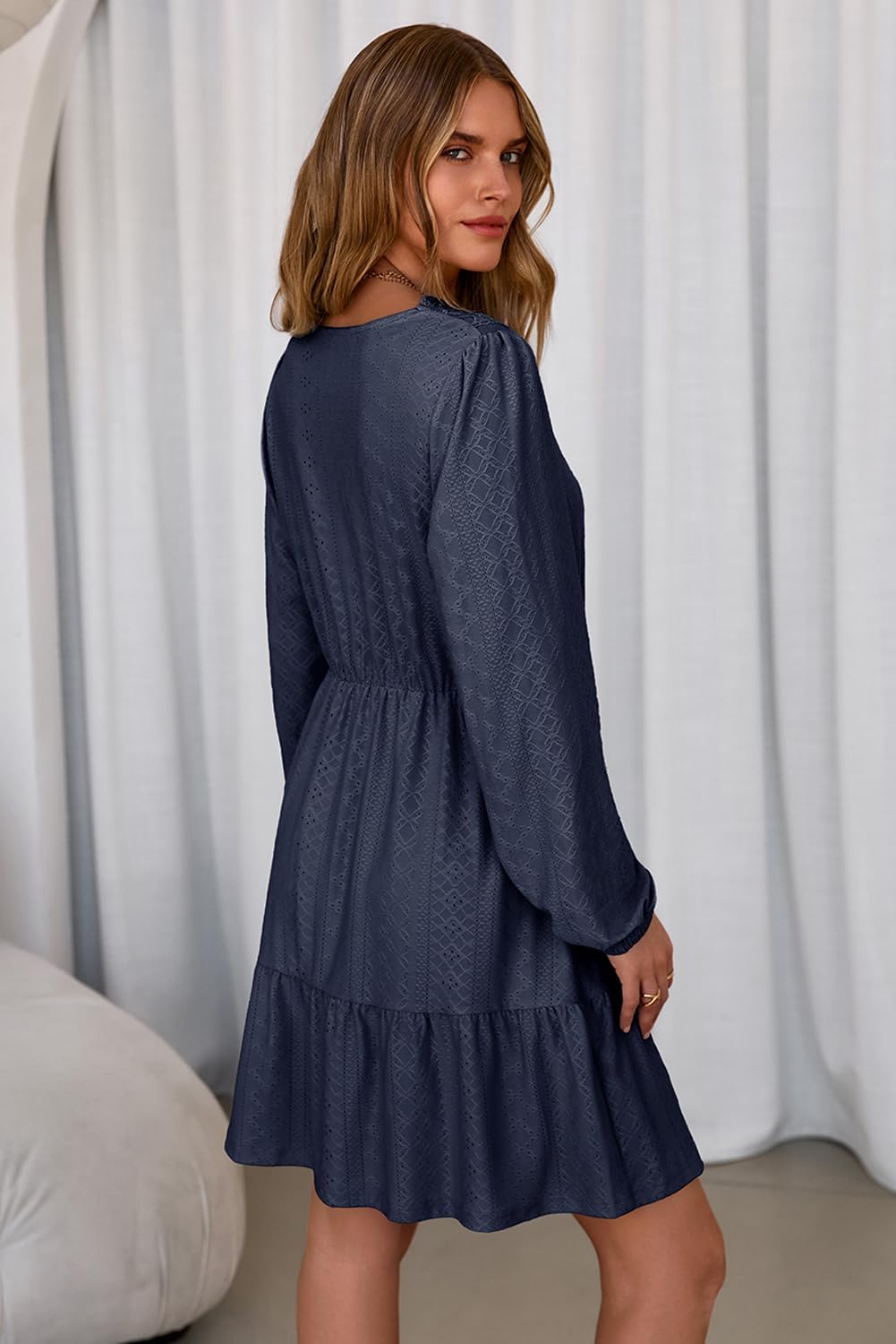 Dokotoo Womens Dresses Lace Hollow Out V Neck Long Sleeve Elegant Casual Dress