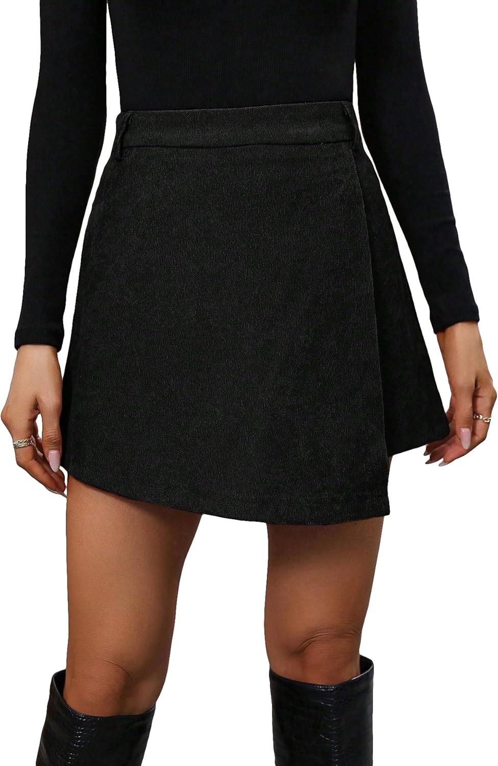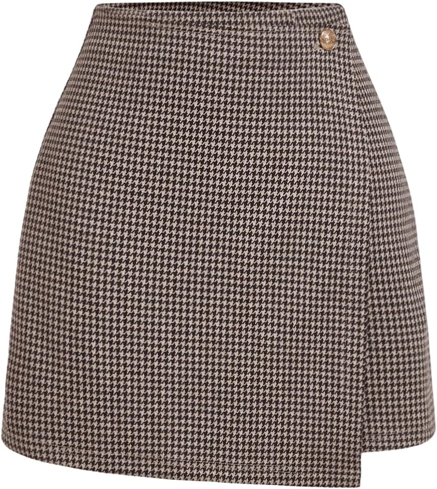 • Women's Houndstooth Print Tie Front Skorts Asymmetrical Hem High Waist Skirt Shorts