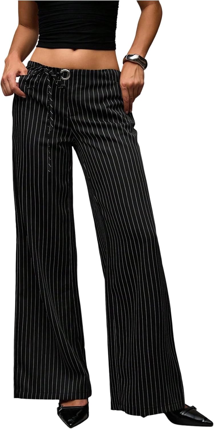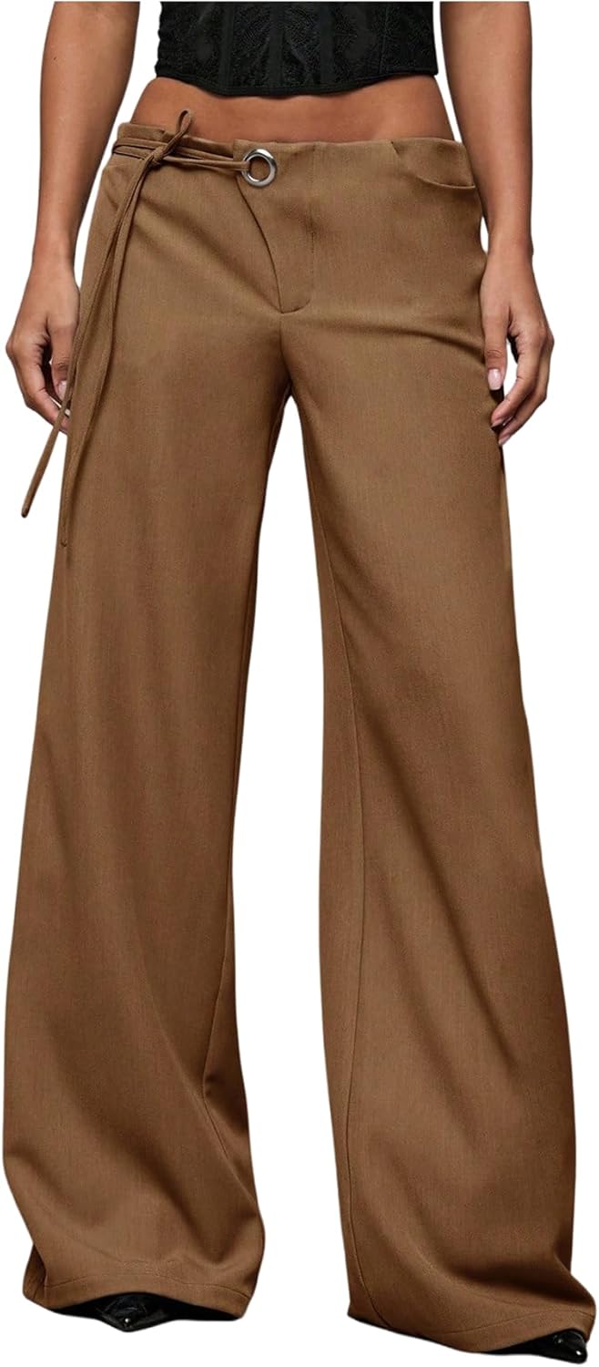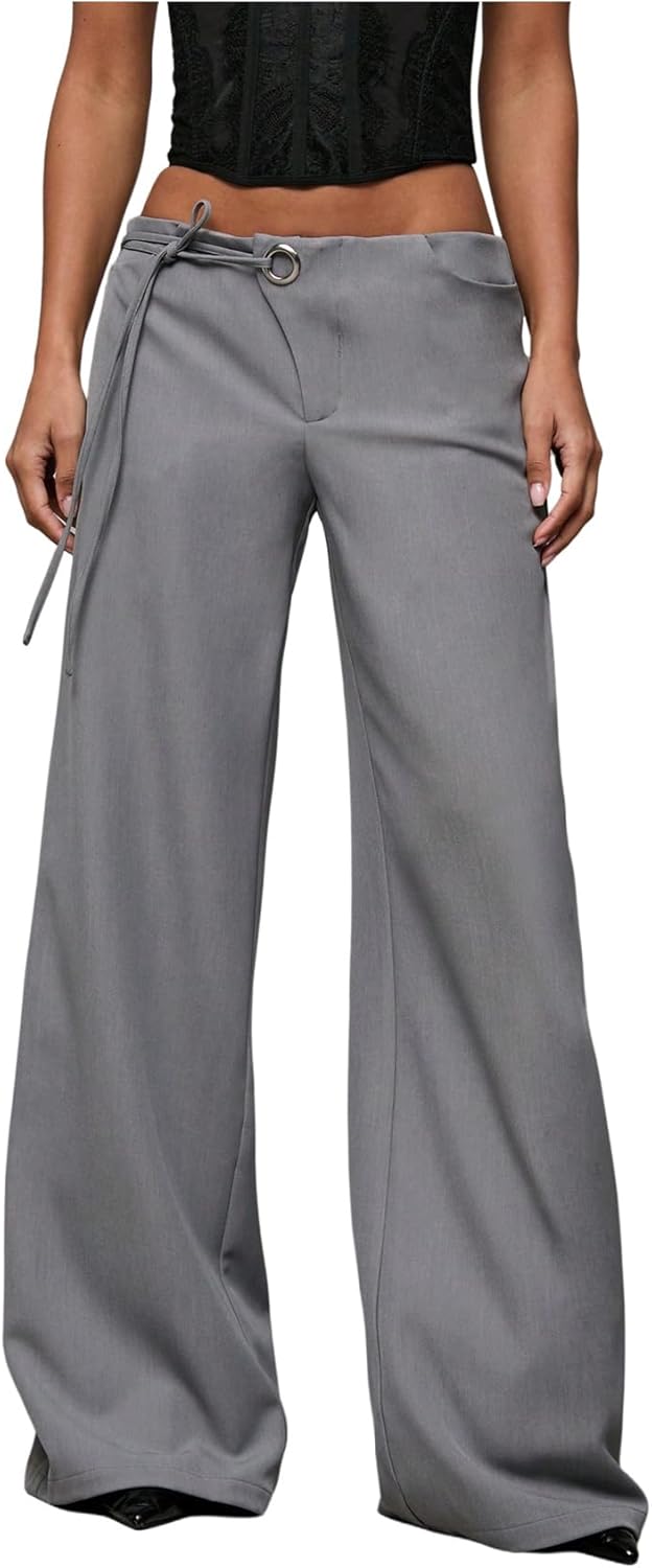 GORGLITTER Women's Low Rise Waisted Dress Pants Wide Leg Straight Trousers Work