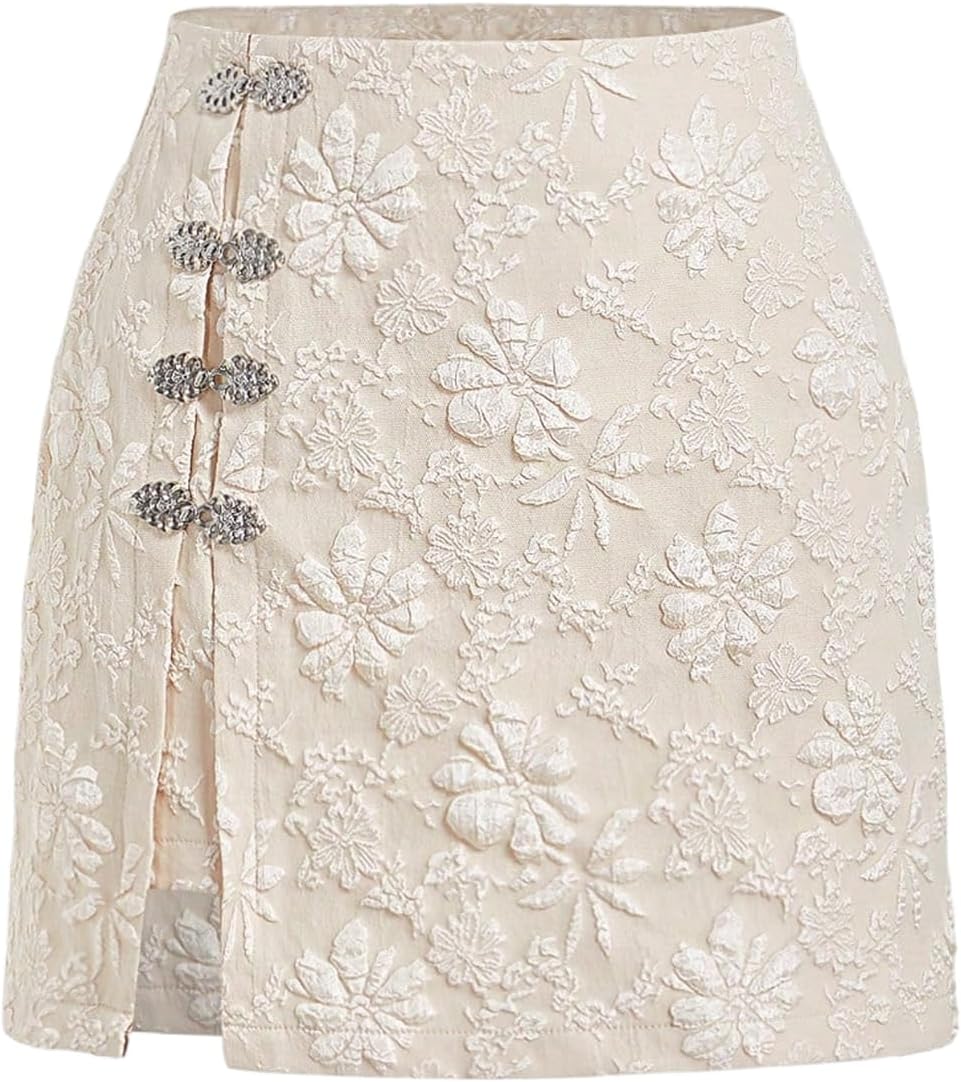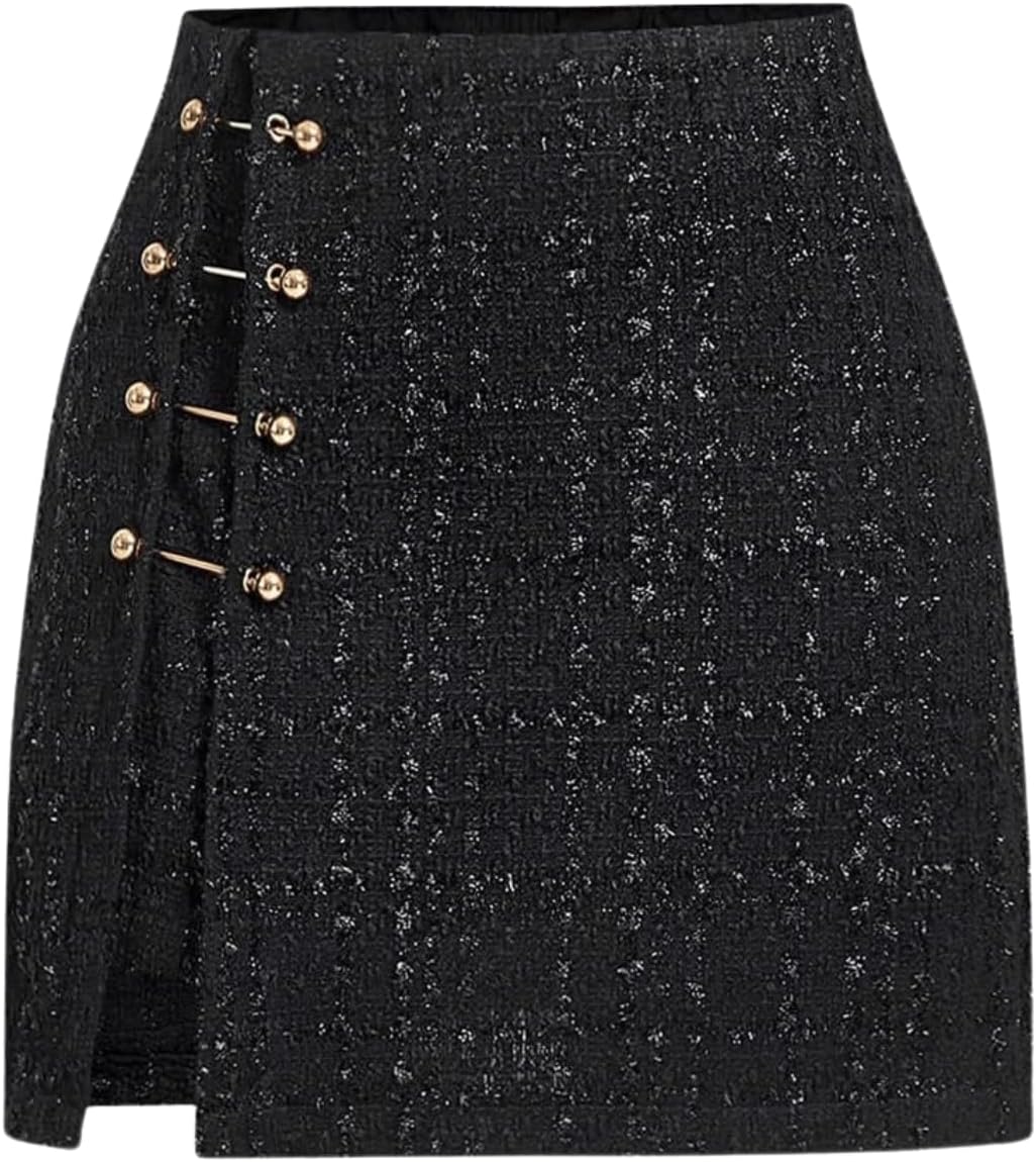 WDIRARA Women's Side Slit Metallic Trim High Waisted Faux Leather Short Skirts
